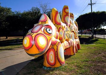 This is a collection of 75 pieces of artwork by local children and Willagee Community Centre users with messages of peace and living in harmony. It acknowledges the 13 different cultural groups residing in the suburb.