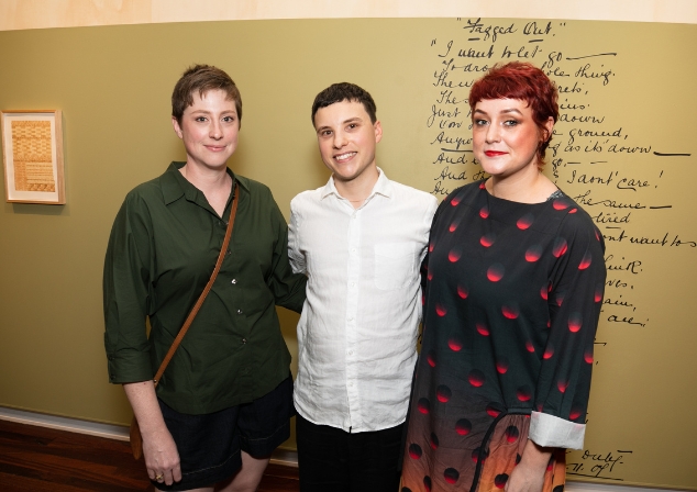 Image: 2023 TILT artists Lisa Liebetrau and Shannon Lyons with curator Brent Harrison at exhibition, 'The beautiful is useful'